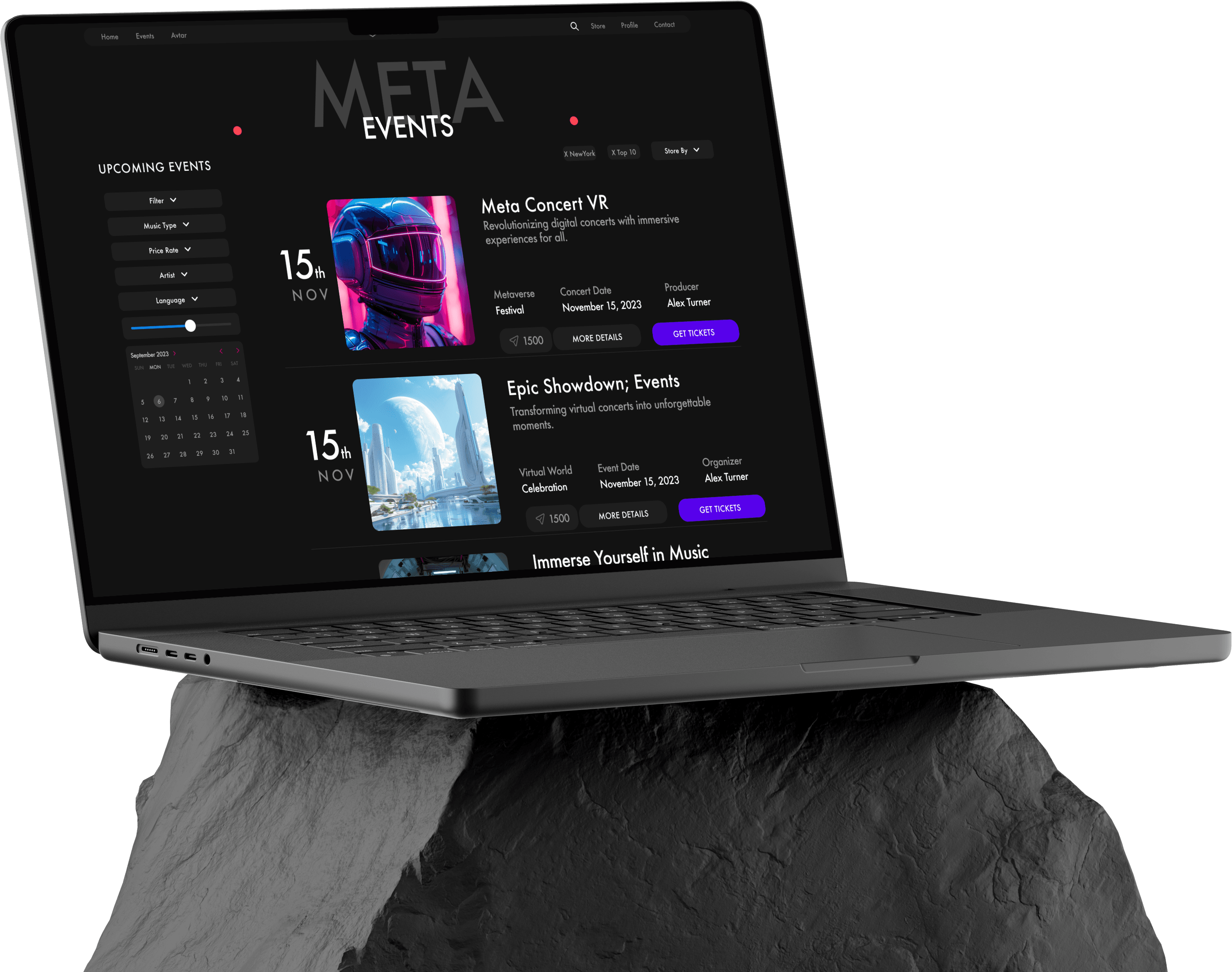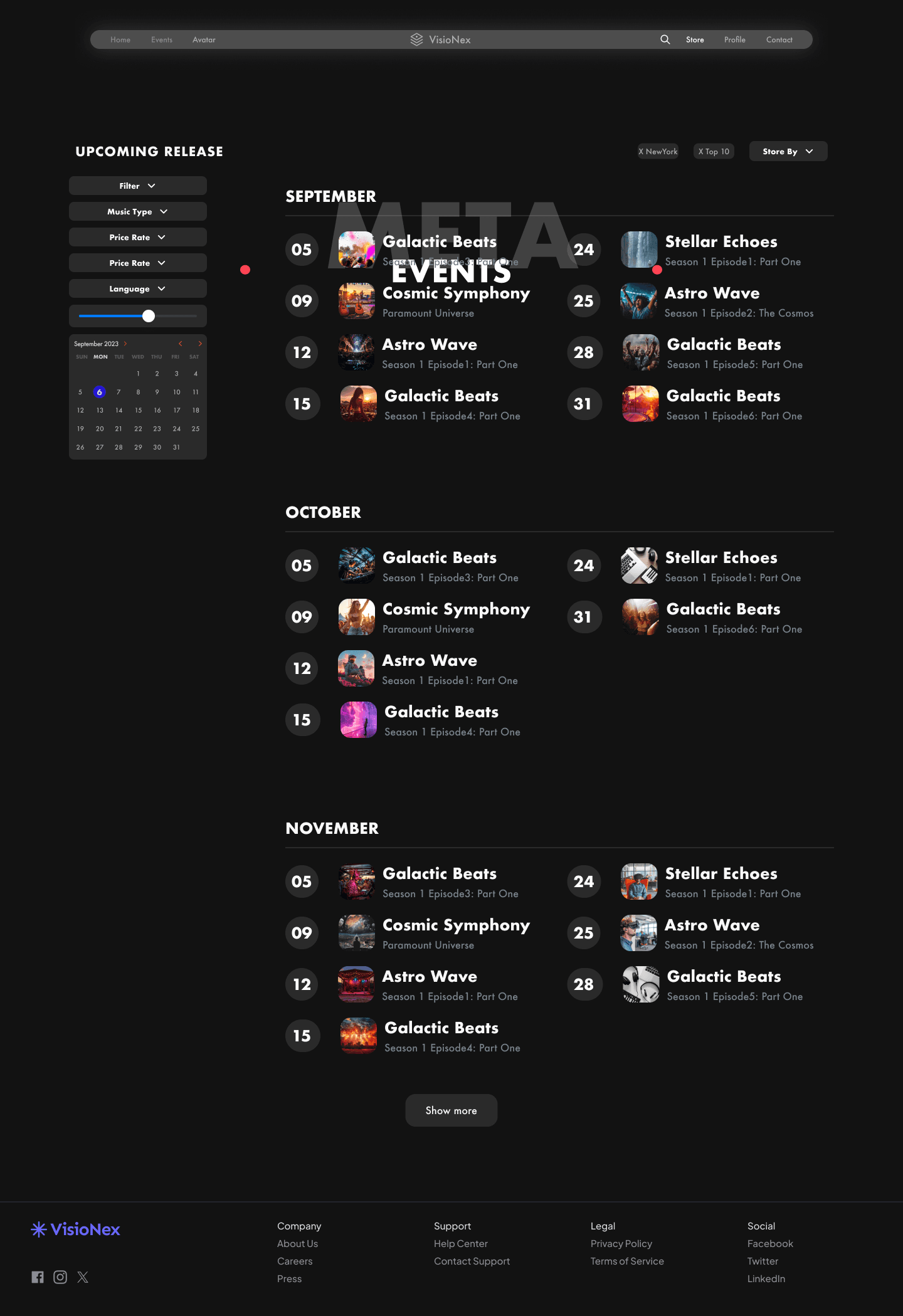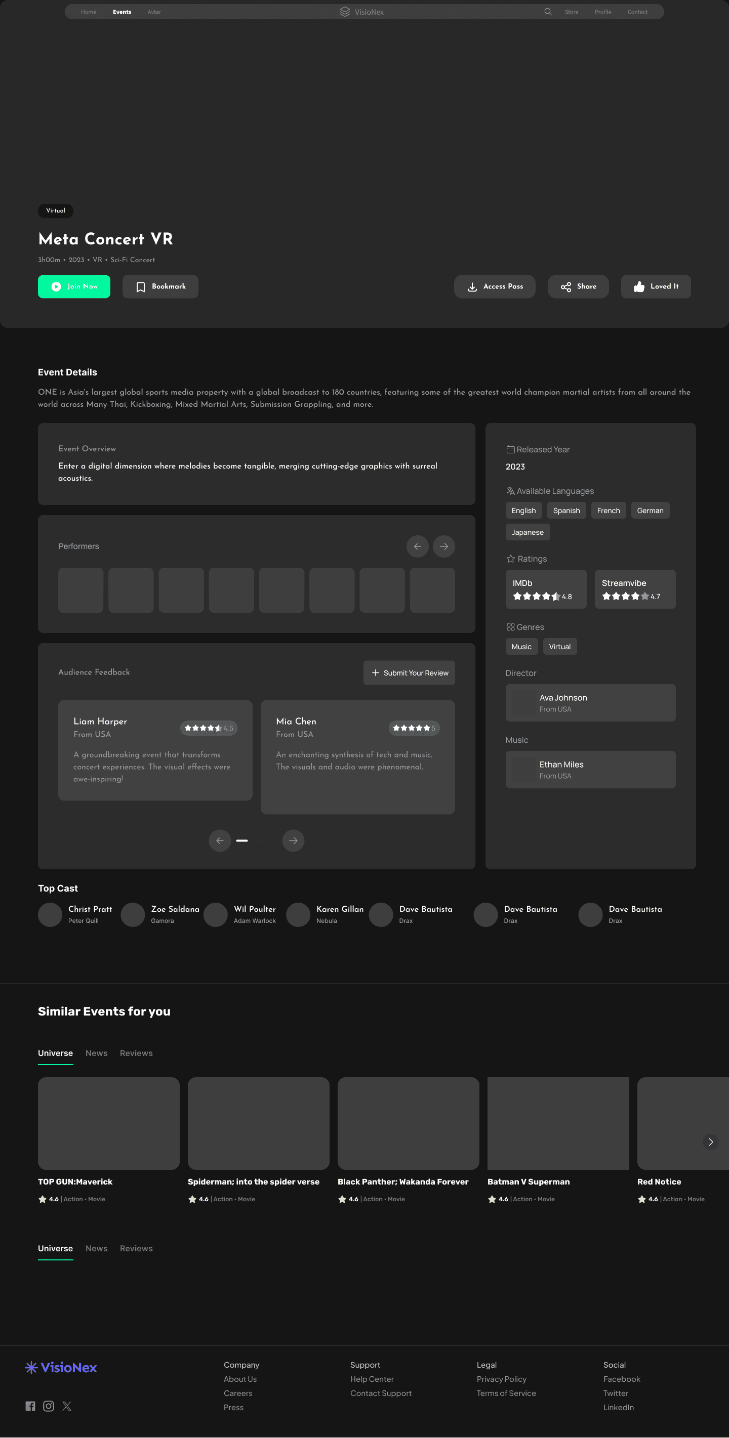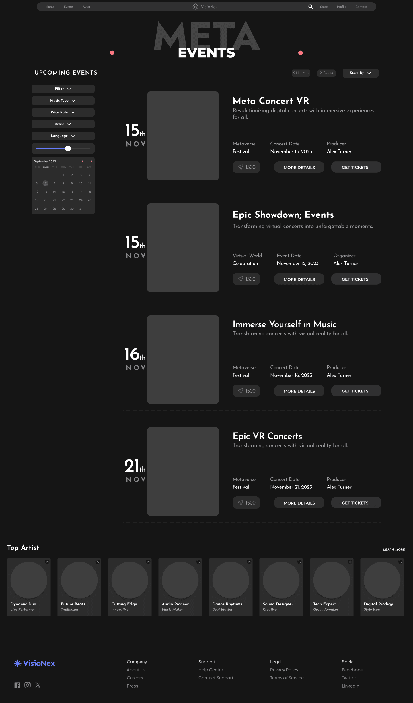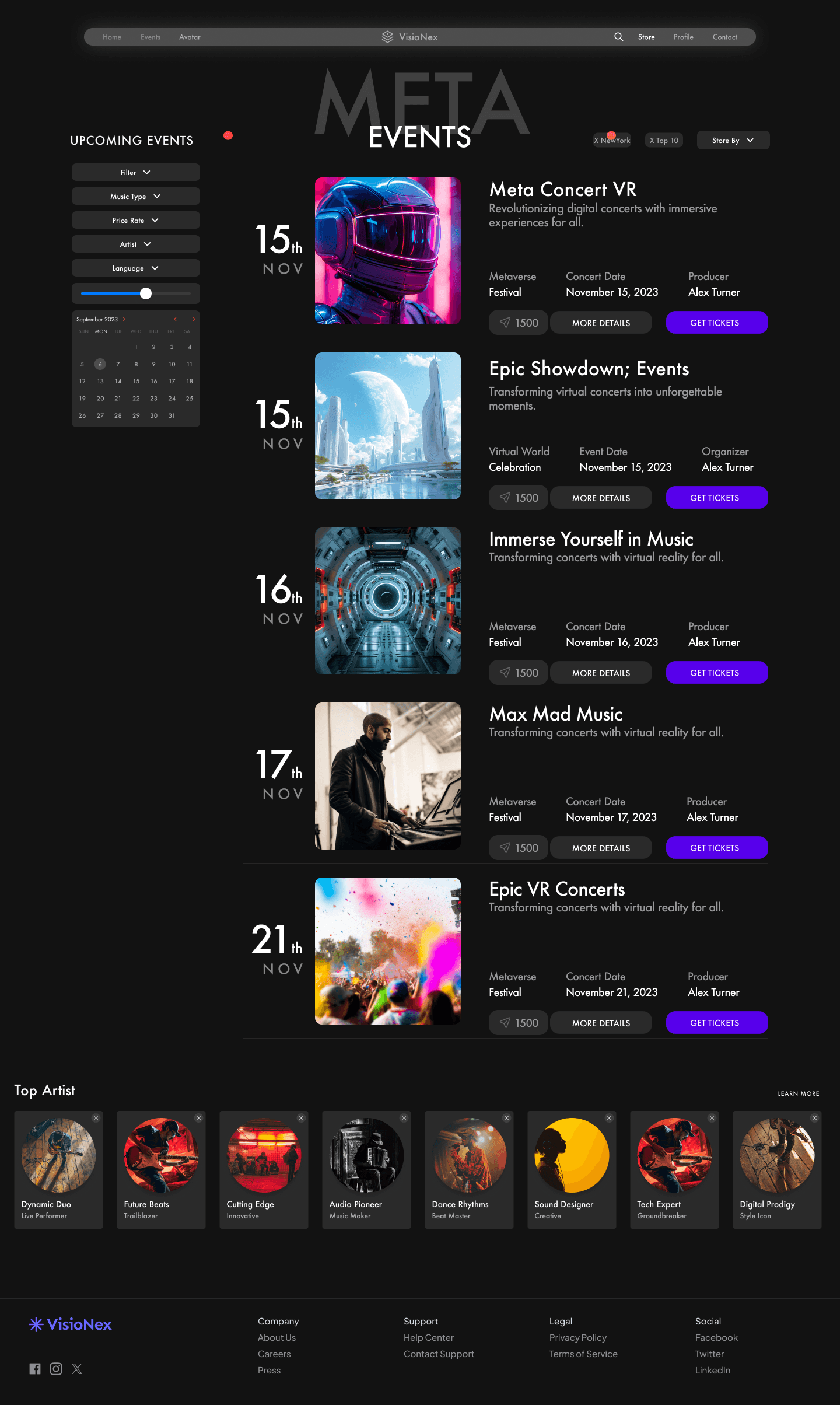 “Experience the Visionex journey—set up your profile, select events, customize your avatar, and immerse in an electrifying virtual concert. Relive, engage, and collect unforgettable moments!”
